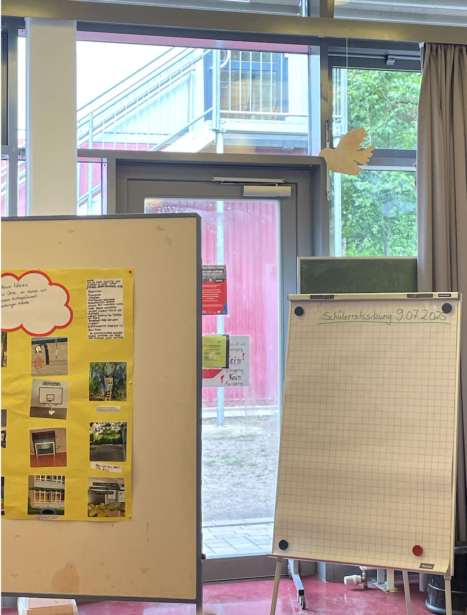 Präsentation der Ergebnisse auf der Schülerratssitzung: Die erstellten Poster haben mehrere Schüler:innen auf einer Schülerratssitzung präsentiert. Dort wurden die Ergebnisse mit gewählten Vertreter:innen aller Klassen und Jahrgänge diskutiert.