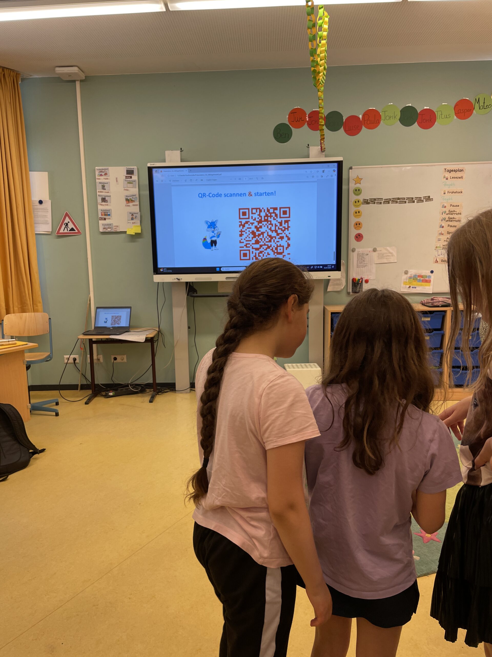 An diesem Projekttag erkunden die Schüler:innen Orte der Mittagsfreizeit auf dem Schulgelände. Bevor die Kinder mit der App losziehen, müssen erst einige Fragen geklärt werden: