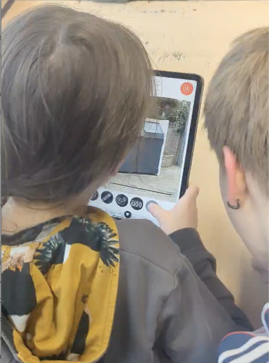Jede Gruppe bekommt ein Tablet und macht sich damit auf den Weg. In den Wohngebieten angekommen schauen sich die Kinder alles genau an. Mit der App fotografieren oder filmen sie das, was ihnen wichtig erscheint. Kleine Gruppen haben sich auch hier bewährt, weil so jedes Kind selbst Fotos oder Videos machen kann, ohne lange zu warten.