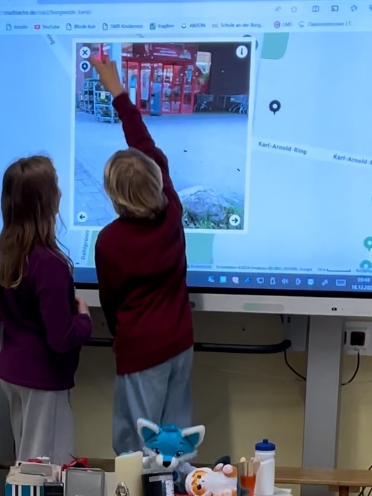 Sobald die Kinder wieder zurück in der Schule sind, sichten und ordnen sie in ihren Gruppen zunächst ihr gesammeltes Material. Gemeinsam legen sie fest, welche Aufnahmen ihnen wichtig sind und präsentiert werden sollen. Häufig müssen die ausgewählten Aufnahmen anschließend noch bearbeitet werden, da während der Stadtteilerkundung dafür meist nicht genügend Zeit bleibt. Die Aufnahmen werden auf unterschiedliche Weise ergänzt und kommentiert, etwa durch Texte, Audioaufnahmen oder Zeichnungen. Und versehentlich aufgenommene Gesichter können dabei mit Smileys unkenntlich gemacht werden. Abschließend fließen die ausgewählten und bearbeiteten Beiträge in eine digitale Karte, die die Wahrnehmung von Müll im Stadtteil aus der Perspektive der Kinder sichtbar macht.