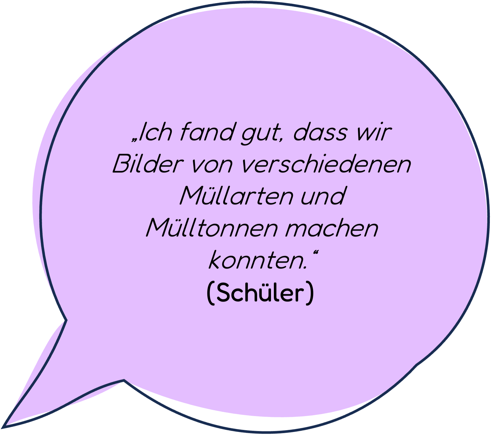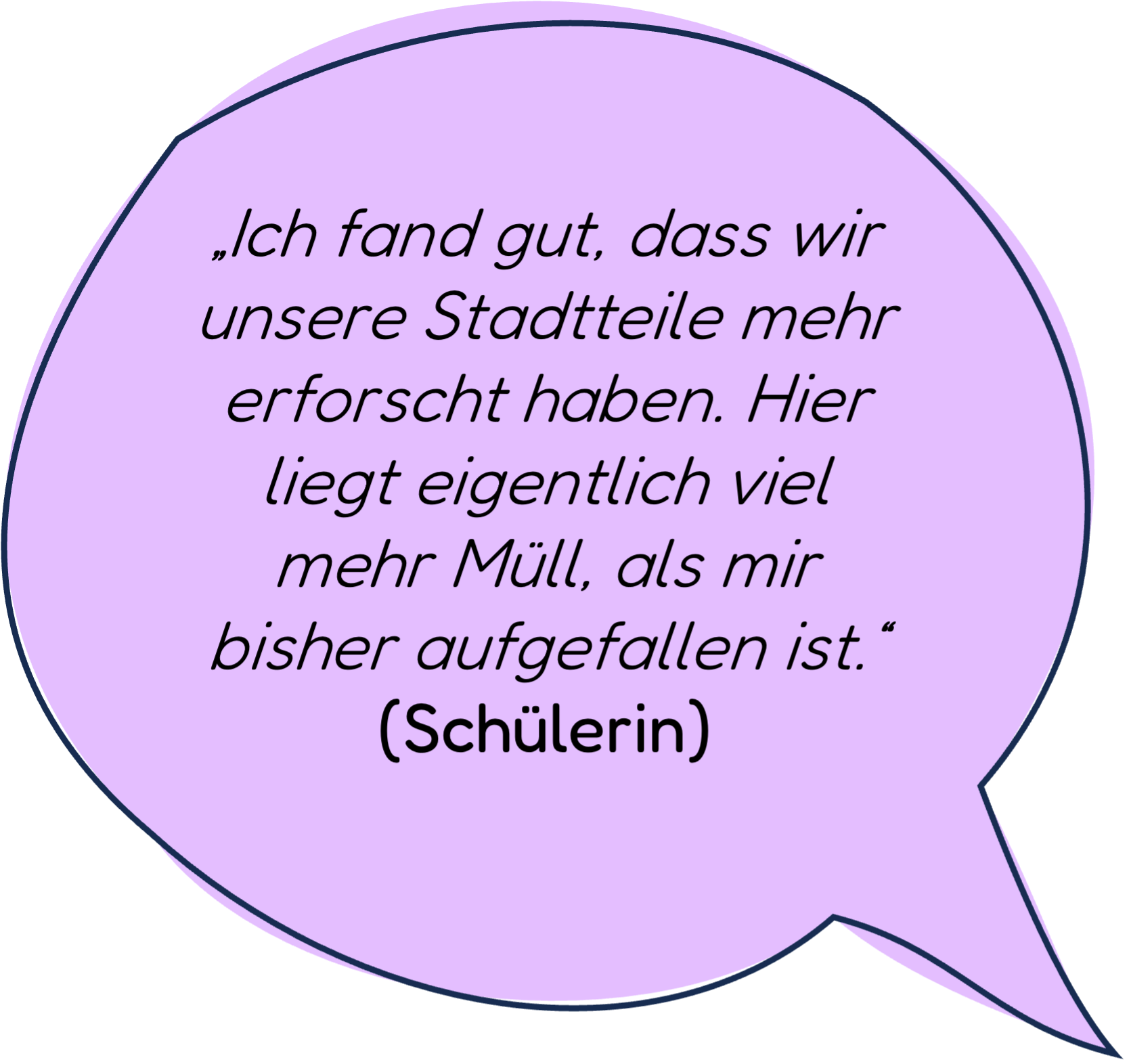 Abschluss: Was hast du Neues gelernt? Abschließend werden die gemeinsamen Erfahrungen ausgewertet. Die Schüler:innen denken darüber nach, was sie über Müll (im Stadtteil) gelernt haben, wie sich ihre Wahrnehmung des öffentlichen Raums verändert hat und wie es sich angefühlt hat, eigene Beobachtungen zu dokumentieren und zu präsentieren.