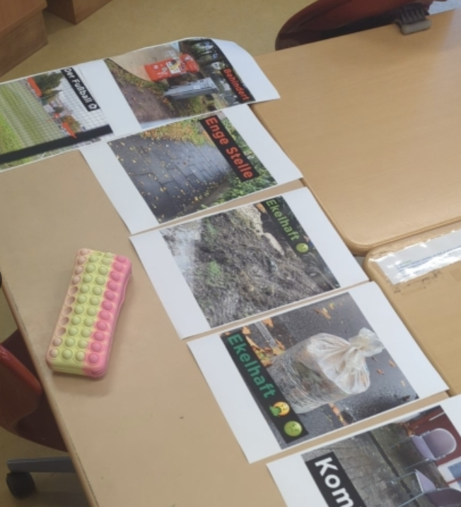 Anschließend wählen die Kinder innerhalb ihrer Gruppen diejenigen Aufnahmen aus, die besonders gut zeigen, wo sie sich unsicher fühlen und welche Verbesserungen sie sich wünschen.