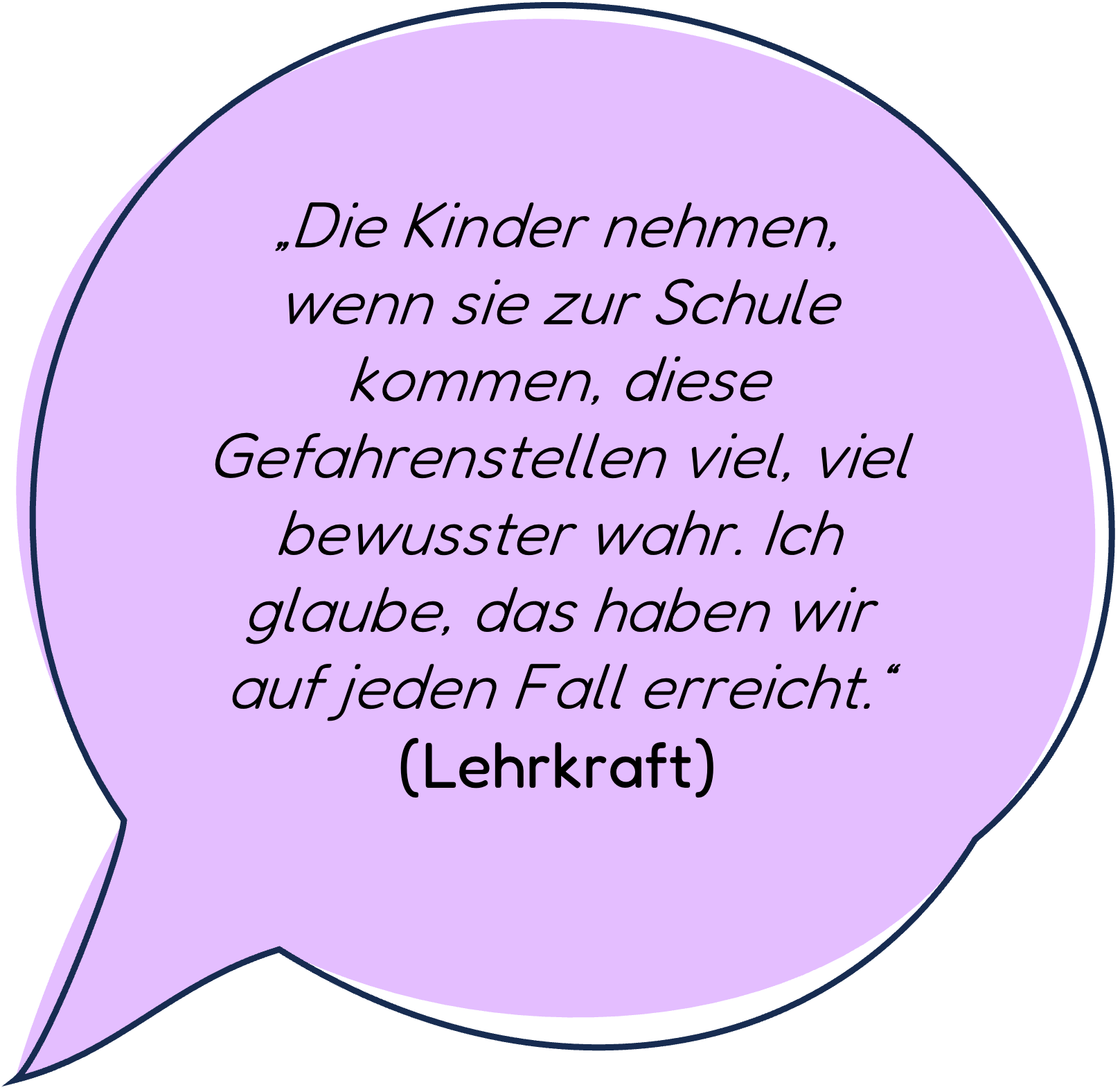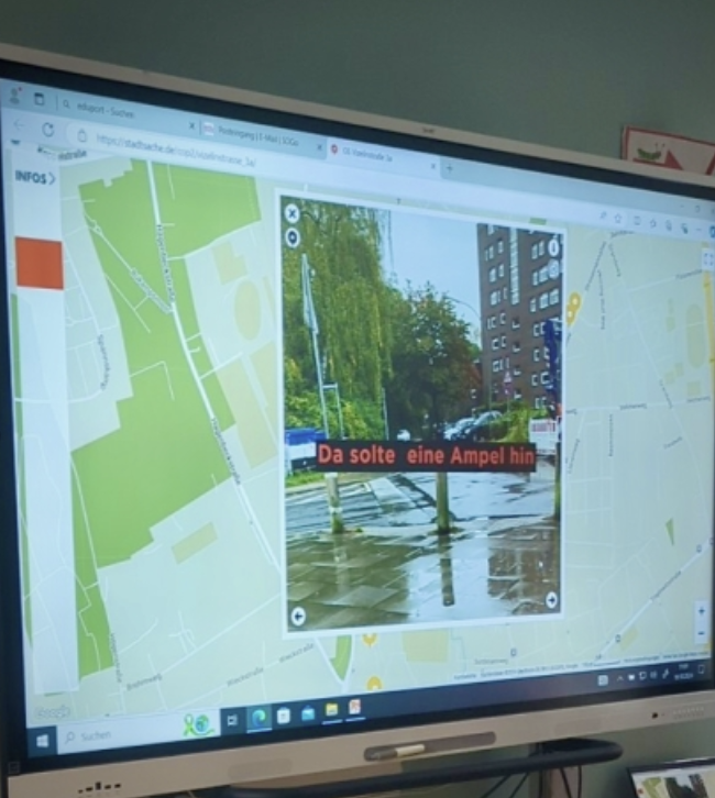 In dem Projekt Sicherheit auf dem Schulweg erforschen die Schüler:innen ihren Schulweg als Teil ihres Lebensraums. Dabei entdecken sie Orte, an denen sie sich besonders wohl, sicher oder unsicher fühlen, und halten ihre Beobachtungen digital fest. Durch Austausch und gemeinsame Reflexion entwickeln sie ein Verständnis dafür, was einen sicheren Schulweg ausmacht. Die öffentliche Darstellung ausgewählter Ergebnisse im Stadtteil trägt zur Sensibilisierung anderer bei und lässt Kinder erfahren, dass sie ihr Wissen nutzen können, um andere zu informieren und zur Verbesserung der Schulwegsicherheit beizutragen.