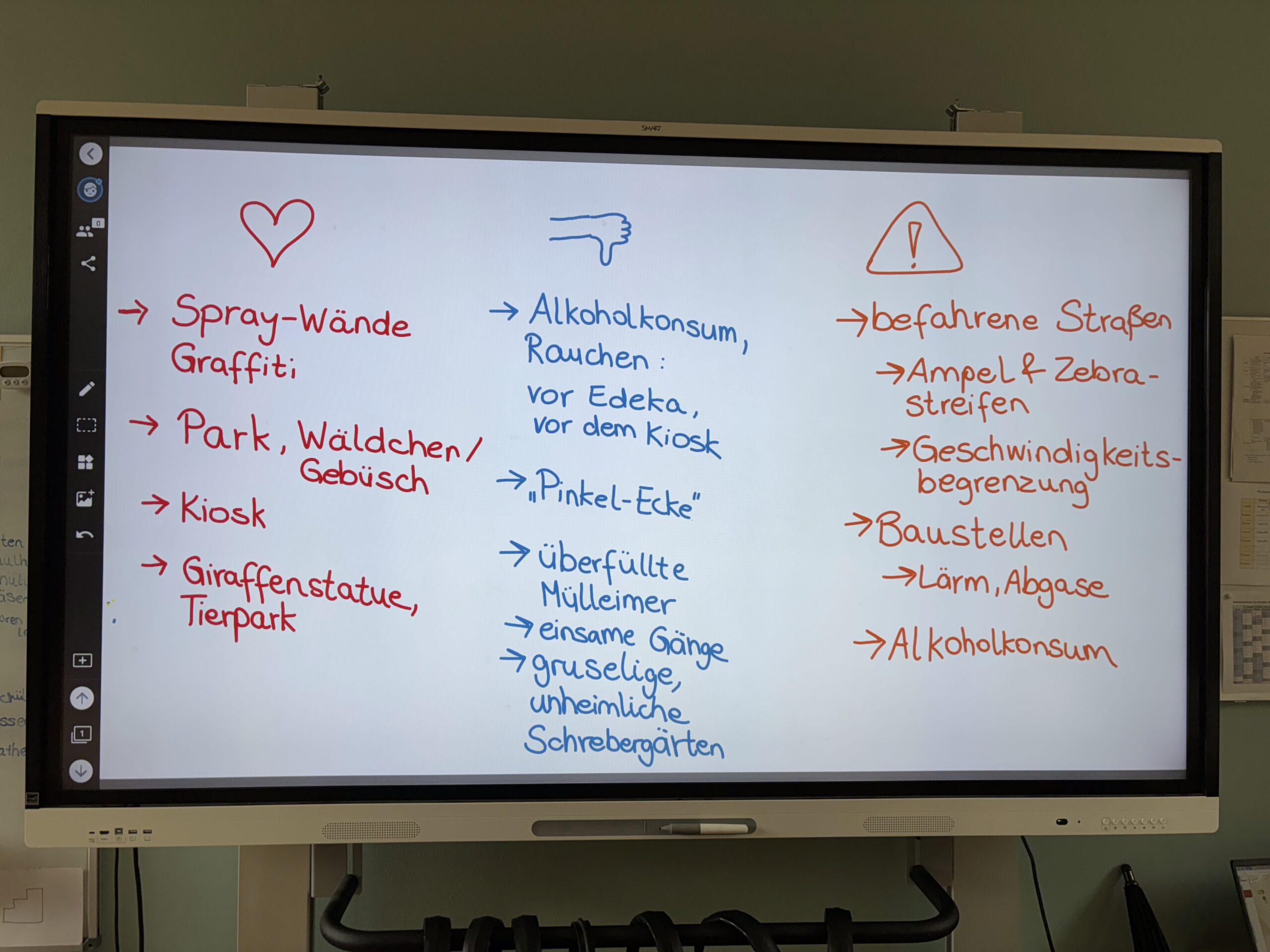 Nach der Präsentation werden die Aufnahmen und Erfahrungen der Kinder im Plenum gemeinsam reflektiert. Dabei stehen folgende Fragen im Mittelpunkt: Wo fühlst du dich unsicher? Und was würdest du gerne an deinem Schulweg verändern? Die Kinder tauschen sich dazu aus, und die wichtigsten Ergebnisse werden im Klassenraum dokumentiert (Pinnwand oder Smartboard).
