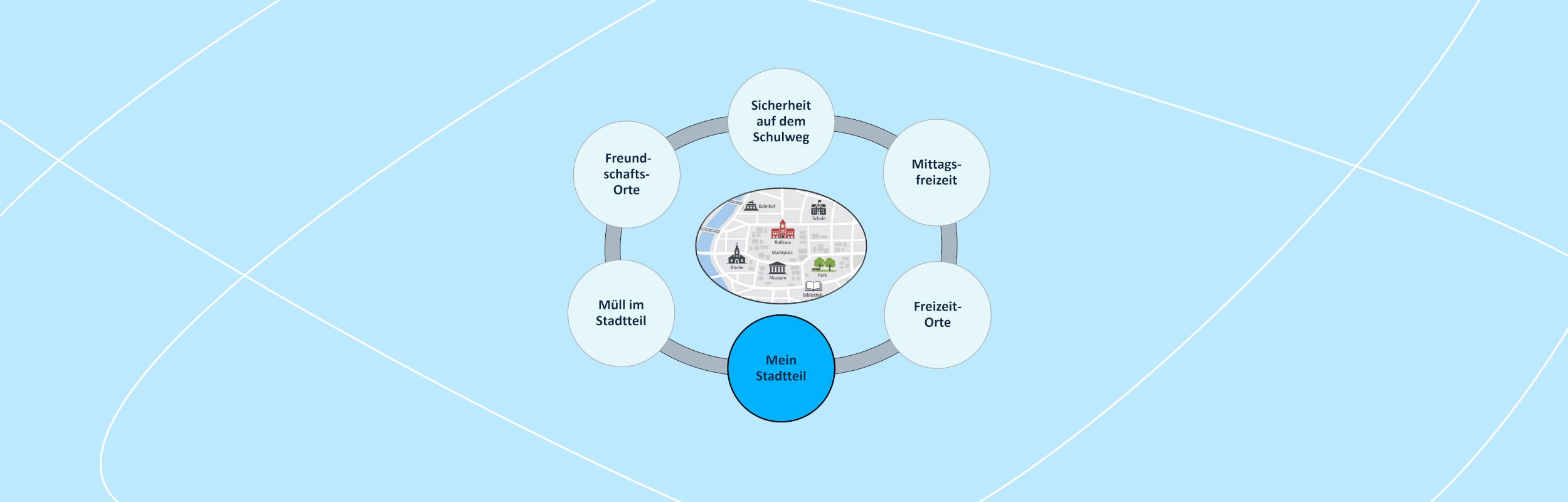 Das Projekt Mein Stadtteil möchte Schüler:innen dazu anregen, ihre unmittelbare Lebenswelt aktiv, reflektiert und digital gestützt zu erkunden. Im Mittelpunkt steht dabei die Perspektive der Kinder auf für sie bedeutsame Orte ihres Stadtteils – etwa Sehenswürdigkeiten, Parks, Spielplätze oder kulturelle Einrichtungen. Die Auseinandersetzung mit dem eigenen Stadtteil soll dazu beitragen, Kinder als Expert:innen ihrer Lebenswelt anzuerkennen und sie soll Kinder ermutigen, sich stärker mit ihrem Stadtteil zu identifizieren und ihn aktiv mitzugestalten.